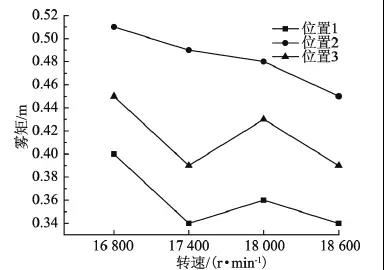 另外,霧矩的大小還有霧化器的轉(zhuǎn)速有關(guān),如圖8所示。給液量為1.5kg˙h-1,隨著轉(zhuǎn)速的增加,霧矩呈減小趨勢(shì)。從圖中也可以看出,3個(gè)位置的霧矩差距較大,其源于霧矩的不均勻性。但在實(shí)際運(yùn)行過(guò)程中,為了避免未蒸發(fā)液滴的粘壁,往往以最大霧矩作為設(shè)計(jì)與運(yùn)行的依據(jù)。